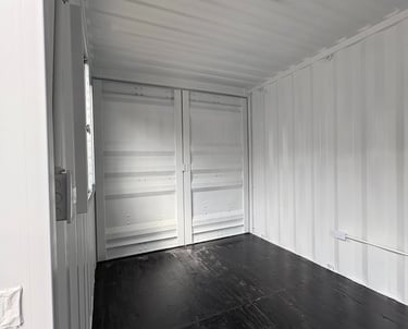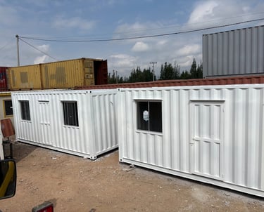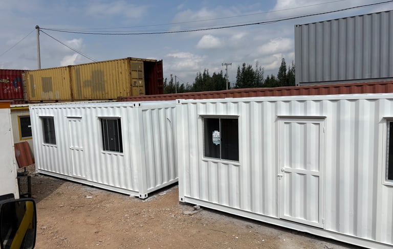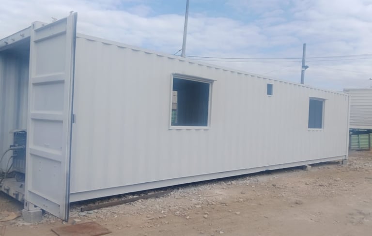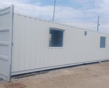 Un contenedor de 20 pies se puede convertir en una oficina donde puedes poner de 2 a 7 puestos de trabajo, con instalación eléctrica he iluminación. Con ventanas de corredera.